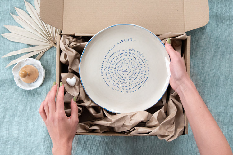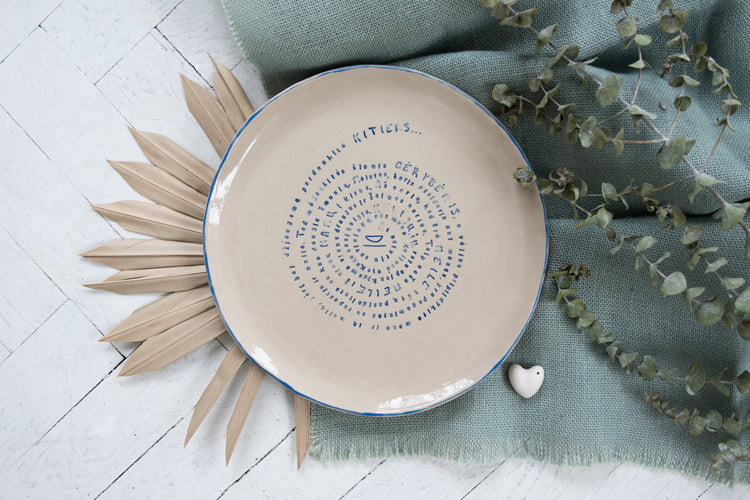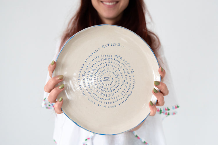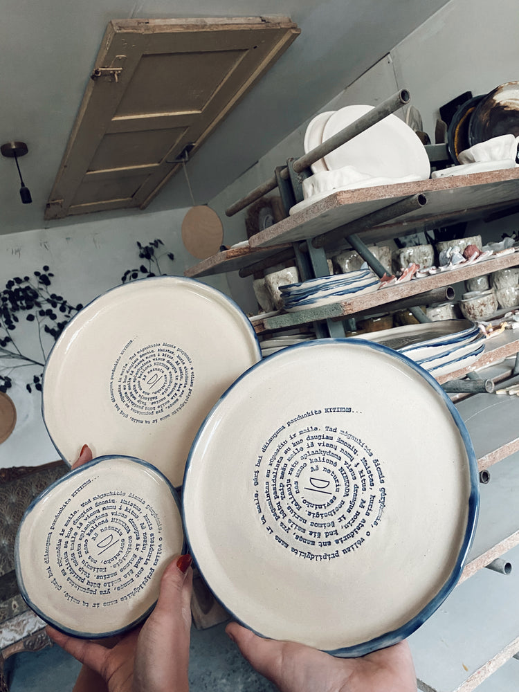 Tai rankų darbo molinė lėkštė, pagaminta su didžiule meile ir šiluma. Kiekvienos lėkštės dydis šiek tiek skirsis - nei vienos nebus vienodos.